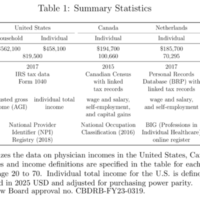 Physician incomes are extraordinarily high in the United States. A new NBER paper finds that U.S. physicians earn roughly two