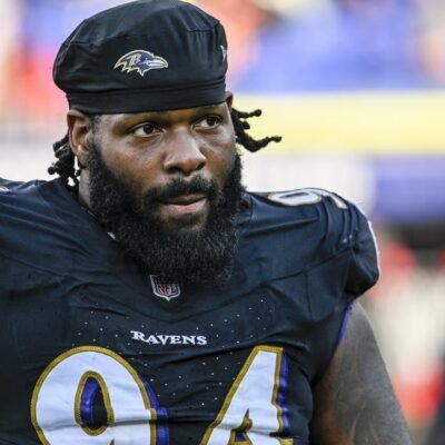 Oct 26, 2025; Baltimore, Maryland, USA; Baltimore Ravens defensive tackle John Jenkins (94) on the field after the game against